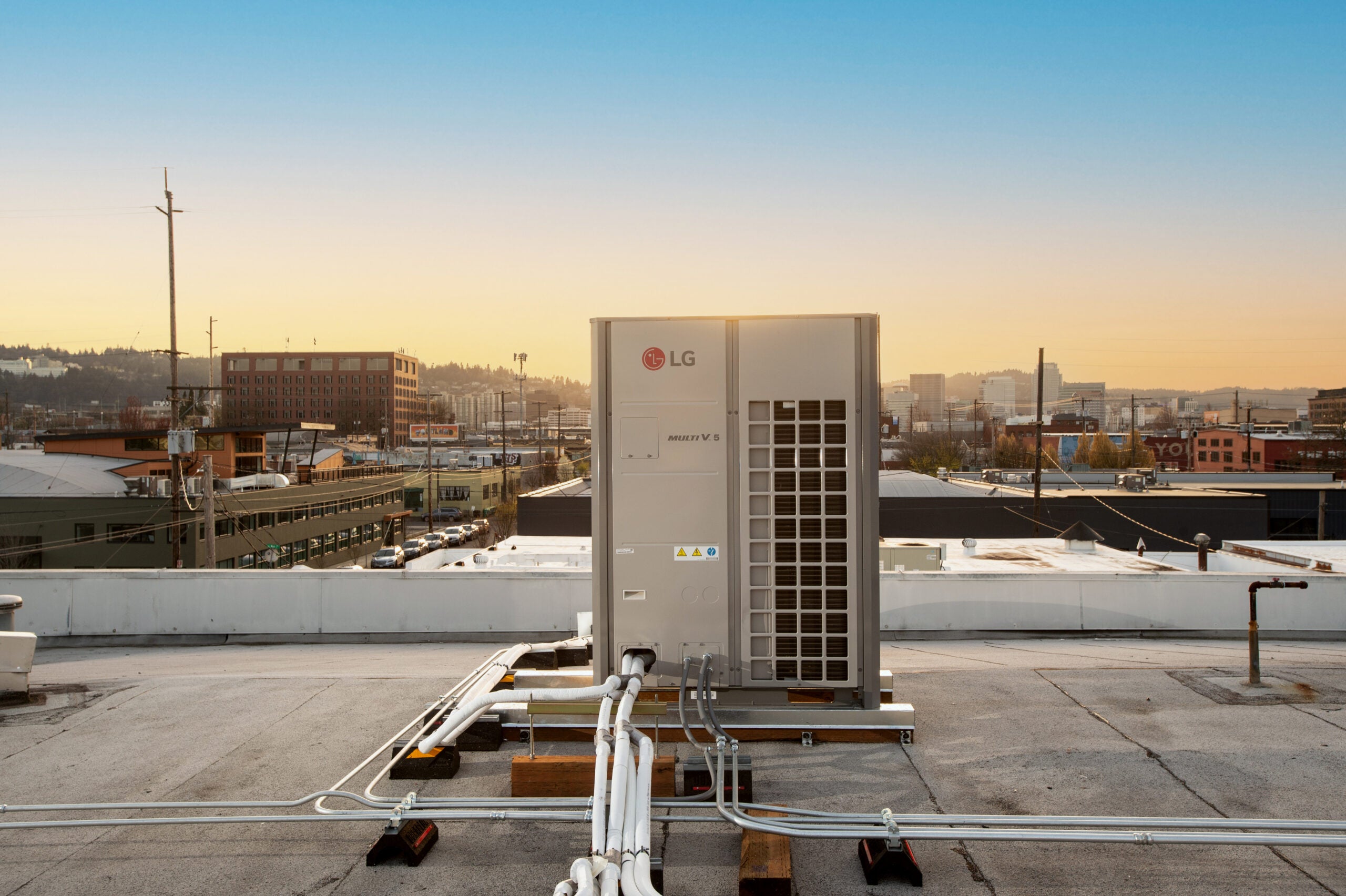 | New HVAC system: | 1x 10-ton LG Multi V5 variable refrigerant flow (VRF) air-source heat pump with 7x ductless indoor units 2xVentacity VS1000RTh HRVs |