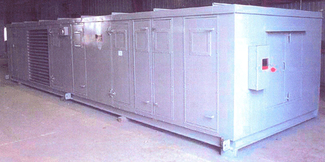 - Blow-through units are the opposite of the draw-through. The coils are located on the high-pressure or outlet side of the fan. Because fan-discharge air is turbulent, the coil must be far enough downstream from the fan to ensure sufficiently laminar air flow for effective heat transfer. These systems are usually larger than draw-through units. Alternately, a pressure plate (a perforated sheet-metal plate) can be installed downstream from the fan discharge to ensure laminar air flow across the coil. This shortens the casing length but causes a significant pressure drop in the system, increasing energy use.